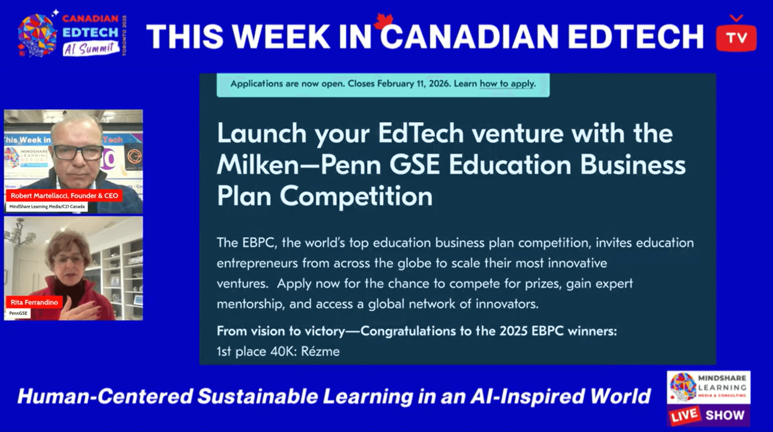 Conversations with Rita Ferrandino and Lisa Schmucki spotlighting EdTech entrepreneurship, global competitions, and EdTech Signals for 2026 from a Canada–U.S. perspective.